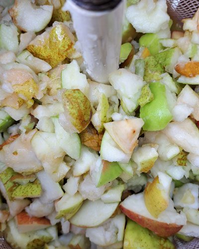 “With my son and mother, washing, cutting out the bad bits and pressing using a home made press using a car jack.”